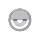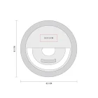 Aro de luz de 28 LEDs con clip ajustable. Se puede montar en smartphones o computadoras para mejorar las fotografías, videos o videollamadas. Cuenta con 3 diferentes intensidades de luz. Incluye batería recargable y cable auxiliar micro USB.