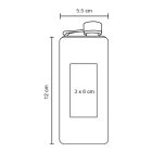 Licorera rectangular con acabado mate y tapa enroscable sujeta al cuerpo.