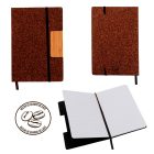 Libreta reciclada de café con 82 hojas de raya, detalle de bambú que sirve cómo soporte para celular, separador y banda elástica.