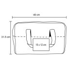Maleta deportiva con bolsa plástica interior con cierre, dos asas superiores reforzadas con velcro y correa ajustable.