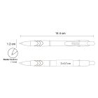 Bolígrafo de plástico de punto medio (1 mm), con grip de goma, clip y mecanismo de click. La compra mínima es de 300 piezas y no se realizan ventas sin impresión.
