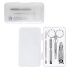 Set de manicure en estuche de plástico con 4 piezas: tijeras, cortaúñas, pinzas para depilar y empujador de cutícula.