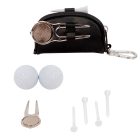 Set de golf que incluye: sacadivots con marcador, 4 tees grandes, 2 pelotas de golf, arnés y estuche.