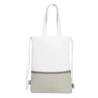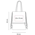 Bolsa-mochila con tirantes de cordón y cerrado de jareta. Cuenta con una bolsa frontal con cierre y asas.