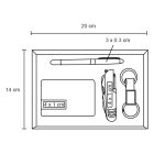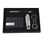 Set ejecutivo Incluye: llavero metálico, porta tarjetero, bolígrafo, navaja y estuche de regalo.