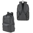 Mochila con compartimento principal con porta laptop de 17″, dos bolsas frontales con cierre, dos bolsas laterales, banda carry-on y asa superior.