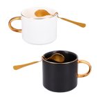 Taza de cerámica con cuchara de acero inoxidable para sujeción en el borde.