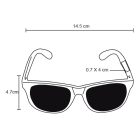 Lentes de sol de plástico con simulación de madera, estuche de poliéster con correa ajustable, mica con efecto tornasol y protección UV.