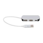 Cable hub USB con dos puertos USB, y un puerto tipo C, ademá de cable USB y tipo C.