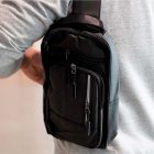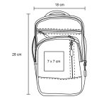 Bolsa de hombro de 4 compartimentos. 1 compartimento principal con bolsa en el respaldo, 3 compartimentos frontales, asa superior y correa ajustable.
