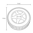 Set de herramientas en forma de neumático. Contiene: 2 pinzas, 6 desarmadores, 1 destornillador, 4 dados y 10 puntas.