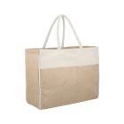 Bolsa de yute laminada con algodón de 286 grs/m2, fuelle y asas.