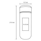 Termo de doble pared con exterior de plástico e interior de acero inoxidable. Incluye tapa enroscable con asa.