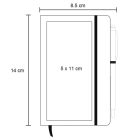 Mini libreta de poliuretano con banda elástica para sujetar cubierta, separador y 75 hojas rayadas. Incluye bolígrafo con goma touchscreen.