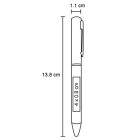 Bolígrafo metálico roller con clip y mecanismo retráctil.