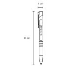 Bolígrafo metálico con goma touch screen en la punta, clip y mecanismo de click.