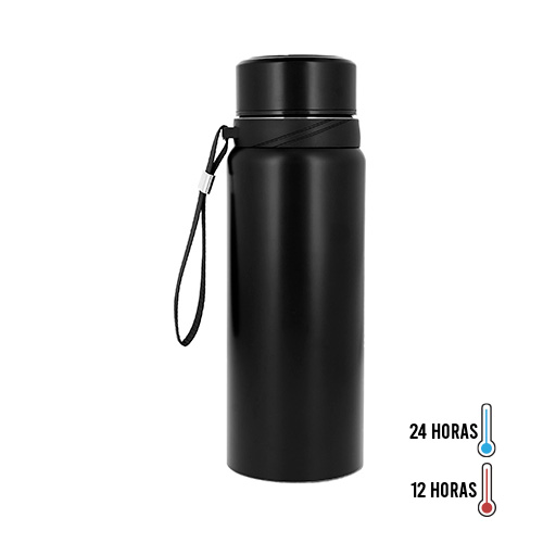 Termo con doble pared de acero inoxidable, insulado al vacío y acabado mate. Incluye filtro infusor y tapa enroscable.