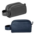 Neceser de curpiel con interior forrado, cierre y asa.