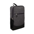 Mochila con compartimento principal acolchonado, base reforzada con curpiel, pequeño compartimento frontal, dos mallas laterales, dos correas ajustables, asa superior y fuelle.