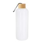 Cilindro de plástico con tapa enroscable de bambú y correa de poliester.