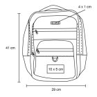 Mochila de 3 compartimentos, 1 compartimento principal con porta laptop, 2 bolsas frontales con cierre, tirantes acolchados y asa superior.
