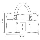 Maleta deportiva con compartimento principal, bolsa frontal con cierre, banda para carry-on, asas y correa ajustable.