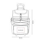 Hielera con interior plastificado impermeable. Incluye bolsillo principal con cierre, compartimento superior con cierre para facilitar su rápido acceso, bolsillo frontal para objetos adicionales y dos bolsillos laterales de malla. Al frente cuenta con un elástico ajustable. Asas laterales y asa para hombro, con altura ajustable y soporte acojinado para facilitar su transportación. Su trolley permite ajustar la altura en 3 posiciones diferentes, también es posible removerlo y plegarlo en caso de querer ahorrar espacio. Capacidad 36 latas.