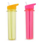Cilindro de plástico de doble pared con popote y boquilla.