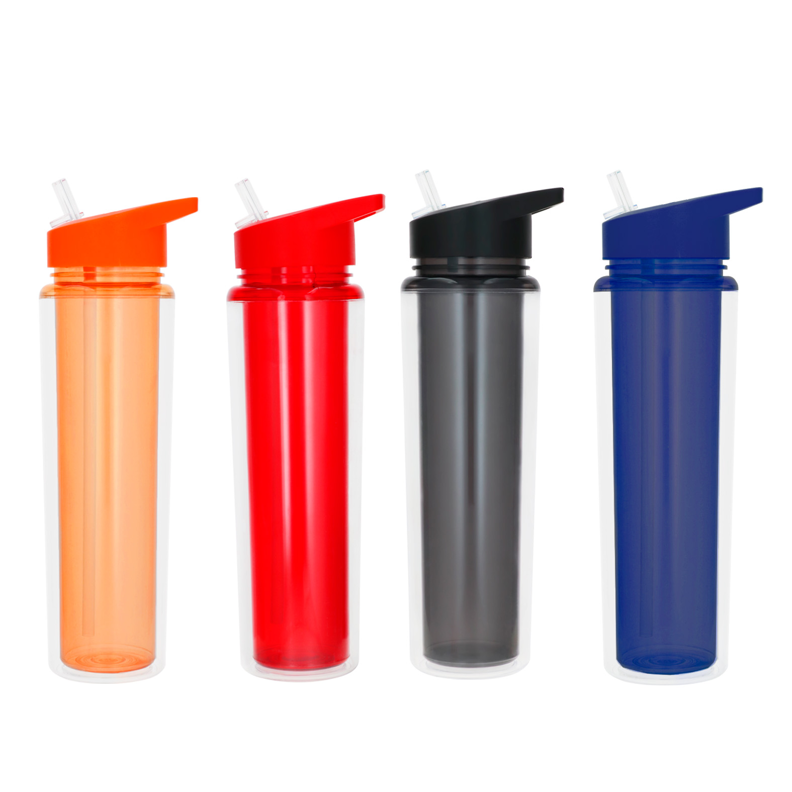 Cilindro de plástico de doble pared con popote y boquilla.