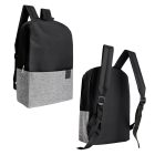Mochila con compartimento principal, bolsa frontal con cierre, asa superior y correas.