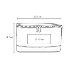 Lonchera de poliéster con interior metalizado, doble cierre, correa ajustable y detalle de corcho en la parte inferior.