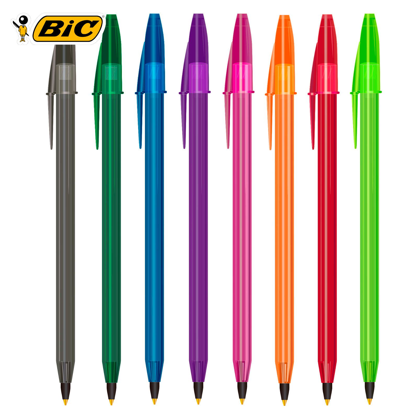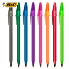 Bolígrafo de plástico traslúcido de punto mediano (1 mm) con tapa. La compra mínima es de 300 piezas y no se realizan ventas sin impresión.