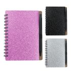 Mini libreta ecológica con espiral, purpurina, bolígrafo y 70 hojas de raya.
