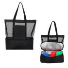 Bolsa de red con 1 compartimento principal, 1 bolsa frontal y lonchera metalizada con cierre en la parte inferior, cuenta con 2 asas superiores.