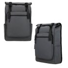 Mochila extensible enrollable con 1 compartimento principal de doble acceso, 1 bolsa interna de malla con cierre, porta laptop, doble broche, 2 compartimentos frontales de cierre, 2 bolsas laterales, carry on, tirantes acojinados y asa superior.