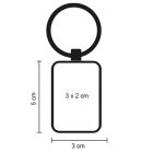 Llavero rectangular metlaico con acabado de bambú y aro reforzado.