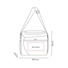Interior metalizado. Bolsa principal y frontal con cierre. Bolsa lateral de malla y correa ajustable. Capacidad para 16 latas.