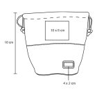 Cosmetiquera / morral de viaje. Contiene 1 compartimento interno de malla, 1 compartimento interno de plástico y separadores de resorte.