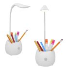 Lámpara portátil con luz LED, lapicero, base y soporte flexible de plástico, con modificador de intensidad touch. Incluye cable de carga.