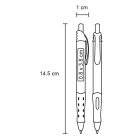 Bolígrafo de plástico de color sólido con clip transparente y grip de goma.