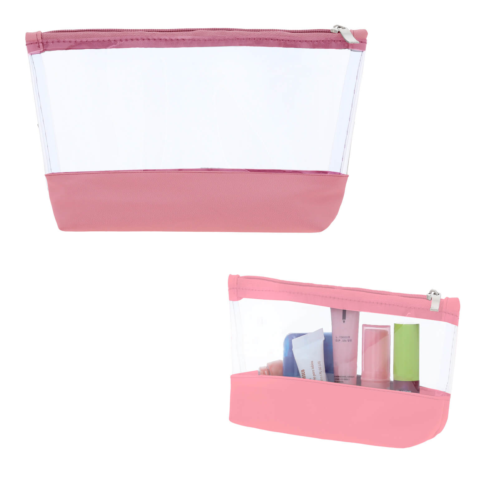 Cosmetiquera con base de poliuretano y plástico transparente en la parte superior con cierre.