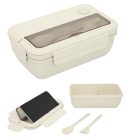 Contenedor para alimento de wheat Straw (fibra de trigo), con 2 compartimentos para alimentos,1 para cubiertos en la parte superior y soporte para celular. Incluye cuchara y tenedor.
