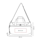 Práctica maleta con amplio compartimento principal y un bolsillo frontal con cierre. Cuenta con un compartimento lateral para calzado y un bolsillo lateral de malla para objetos pequeños. Incluye correa ajustable para hombro con broches de plástico removibles y asas de agarre superior. Perfecta para uso deportivo o viajes cortos