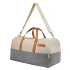 Maleta que destaca tanto en diseño como en estilo. Es ligera y ecológica, hecha de algodón reciclado. Compartimento principal con cierre y base de cartón removible. Incluye asa ajustable removible para hombro.