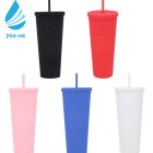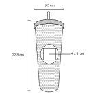 Vaso con doble pared de plástico, textura, tapa enroscable y popote incluido.