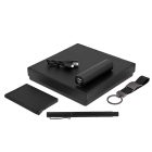 Set ejecutivo incluye: llavero metálico con correa, tarjetero metálico, pluma de metal con tinta gel, batería portátil de 2200 mAh con cable de carga y estuche de regalo.