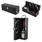 Set para vinos de curpiel con 4 accesorios: Incluye saca corchos, boquilla, corta gotas y corcho metálico.