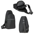 Bolsa de hombro de poliéster con compartimento principal con bolsillo interno, bolsa frontal con cierre y compartimento abierto, así como correa ajustable.