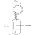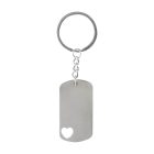 Llavero metálico rectangular con detalle de corazón en la parte inferior y aro reforzado. Incluye caja.