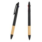 Bolígrafo de plástico con grip de bambú, clip, goma touch screen y 3 tintas.